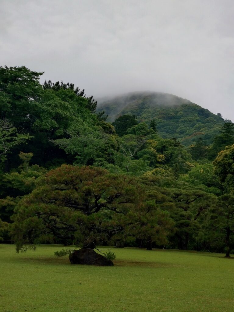 Mt. Kamiji quietly veiled in mist above ancient cedars – the forest itself seems to breathe with the dawn.