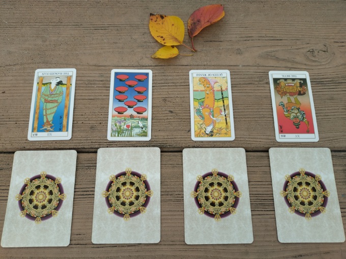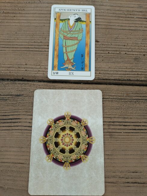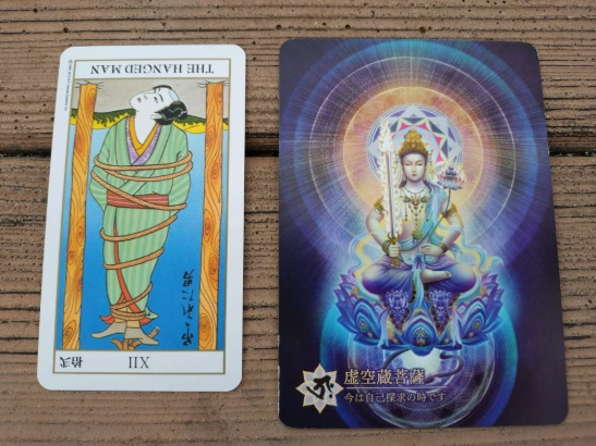 The Hanged Man(revered 逆位置)+Kokūzō Bosatsu (虚空蔵菩薩)