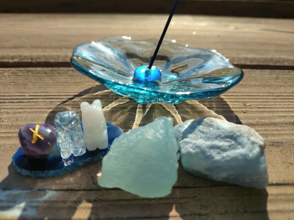 - placed beside a stone, crystal, or natural object