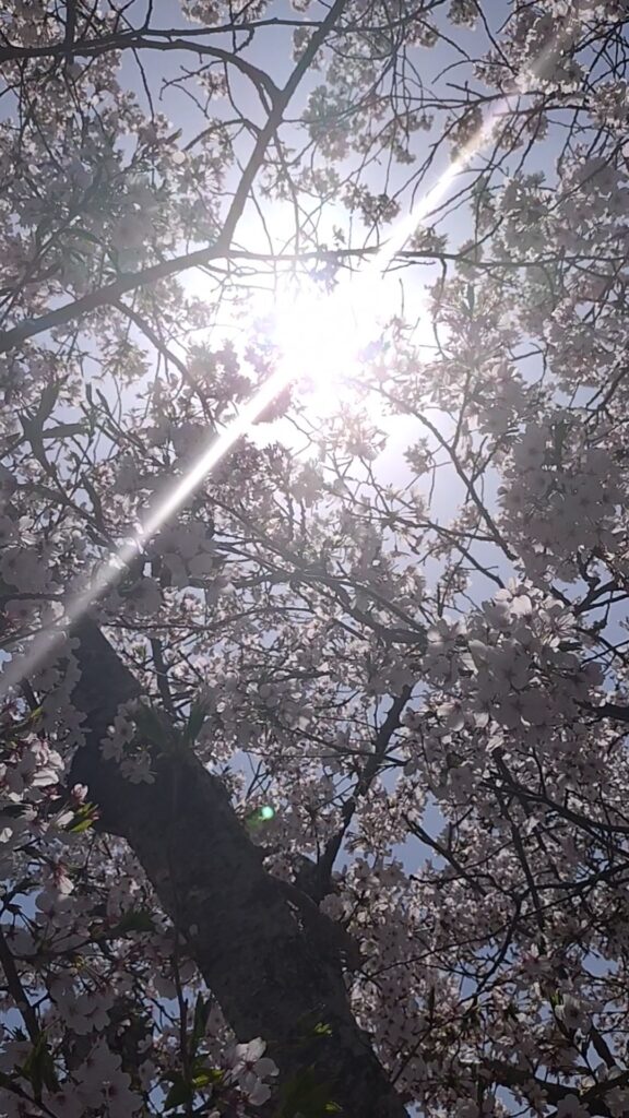 Cherry Blossoms with lightーnear a bus stop in my hometown. That light still lingers, even after the season has passed.
