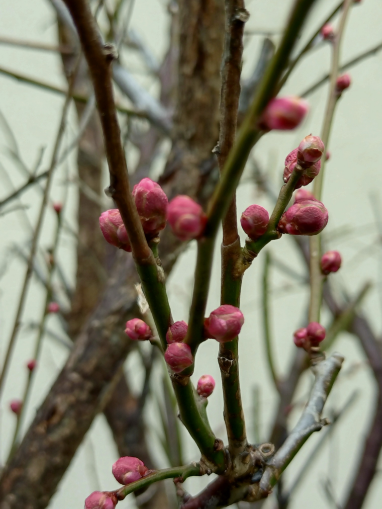 Pink plum buds preparing to bloom.