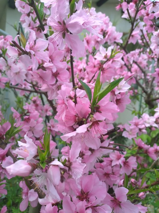 peach blossoms are displayed to wish for health, happiness, and protection.