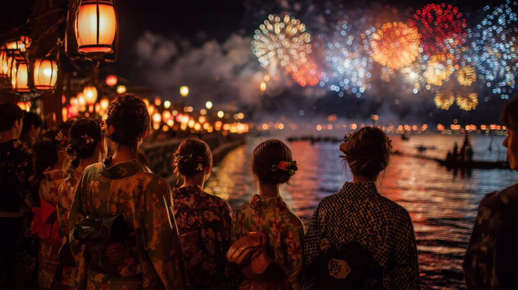 Beyond local festivals, yukata are also inseparable from Japan’s spectacular summer fireworks. From the Sumida River Fireworks in Tokyo to the Nagaoka Fireworks in Niigata and the Lake Biwa Fireworks in Shiga, these dazzling events draw crowds dressed in colorful yukata. Watching fireworks in yukata is more than just a sight — it is an experience that captures the very heart of Japanese summer.