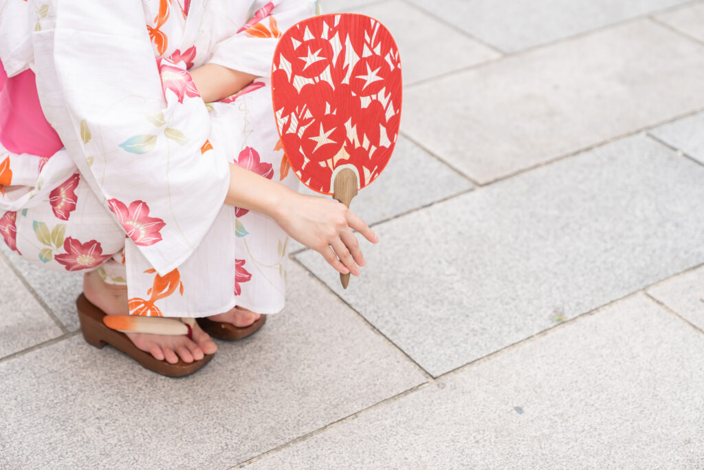 The obi (sash) adds charm, tied in various styles from simple knots to decorative bows. Fans — both sensu (folding fans) and uchiwa (flat fans) — are classic accessories. And footwear varies: geta sandals are lively and casual, while zori sandals (like my own favorites) offer a more refined, traditional touch.